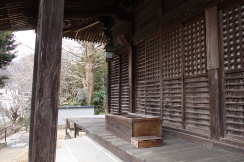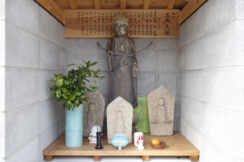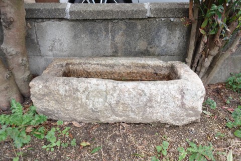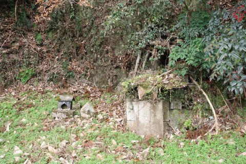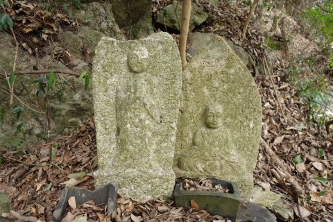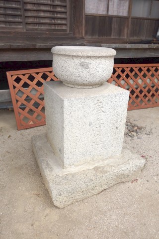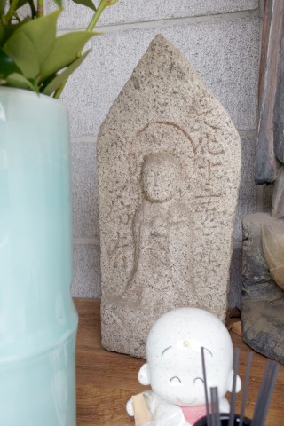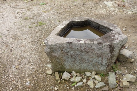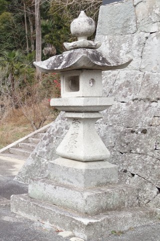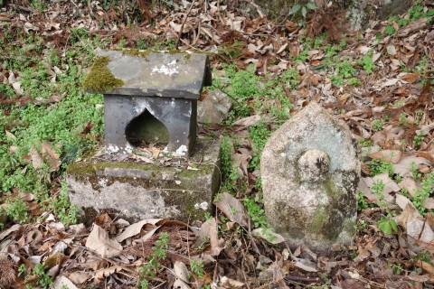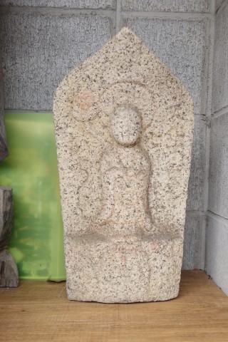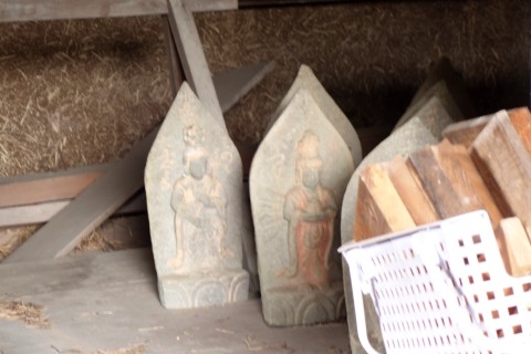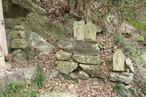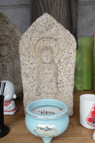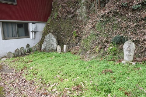 お堂の脇に自然石地神、自然石の燈籠2基、手水鉢がある。