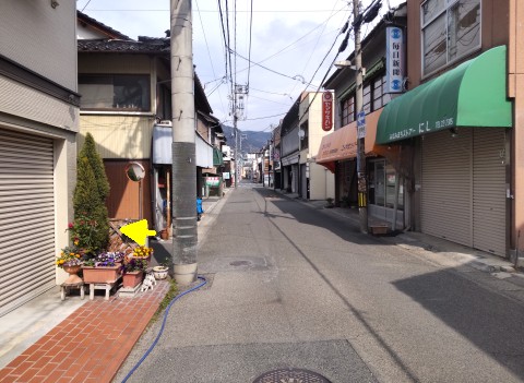 下町の蛭子神社の横から本町通りを北へ155m進む