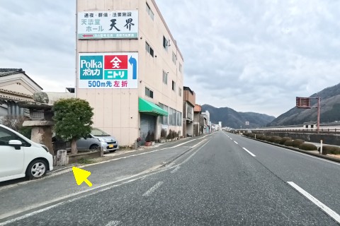 三山第三公民館前の丁字路を左折し、北東へ15m進む。