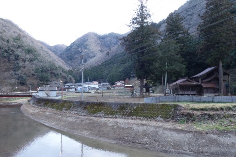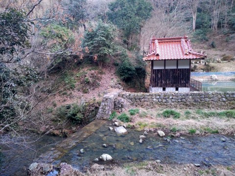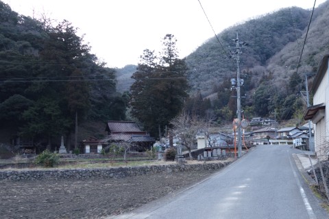 烏頭の八幡神社参道口から北へ150m上り、峠から約1.3km下ると宇戸谷の谷下地区へ。