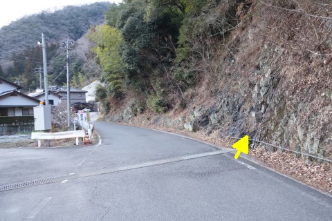 県道166号線と県道48号線の分岐から、県道166号線を北北東へ90m進む
