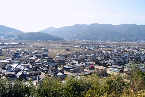 手前から山根、後田、古森、小田川を挟んで遠田、久能、山手の各地区