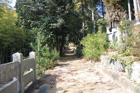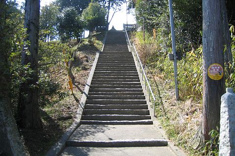 丁字路を右折して東へ600m上り、Y字路から参道を北北東へ120m上る。