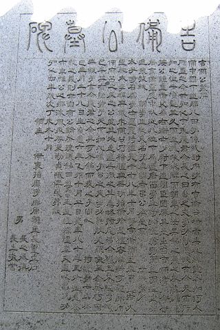 「王朝帝師右大*𢘑*吉僃公(吉備公)千百*秊(年)忌塔」
