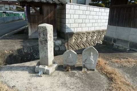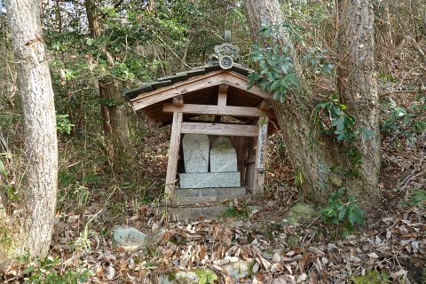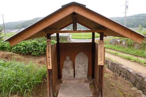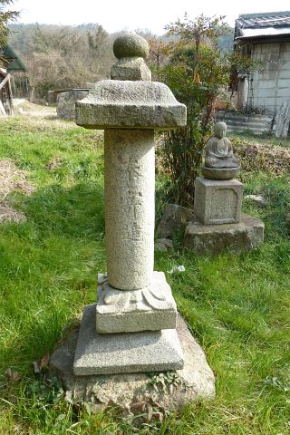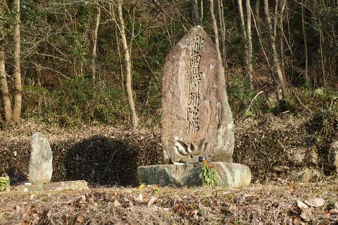 岡田池の牛供養碑群と神護寺への道しるべ