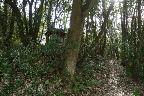 丁字路を左折して南南西へ70m上り、民家の前で左折して南東へ60m上る