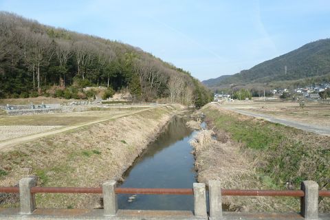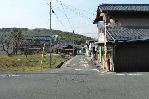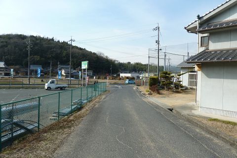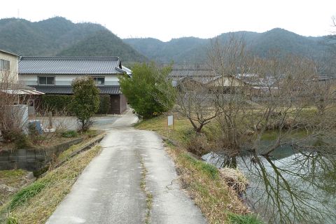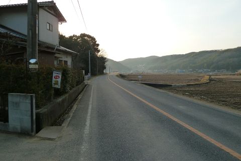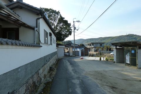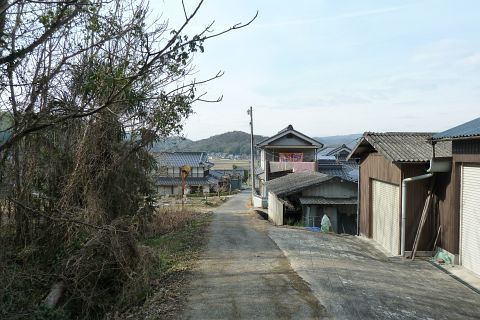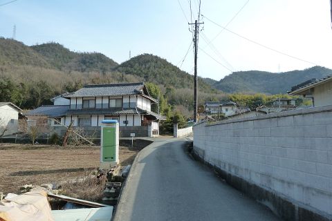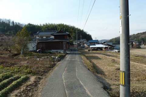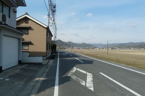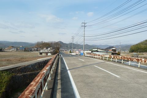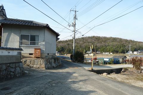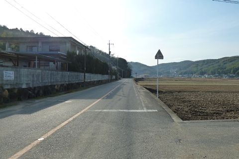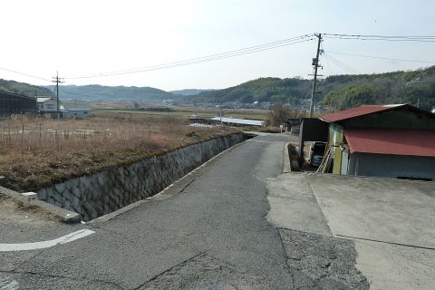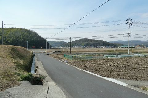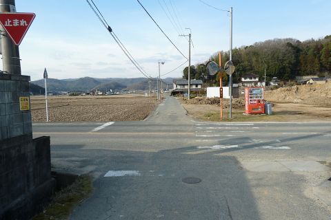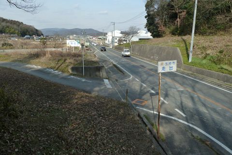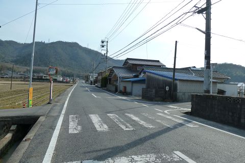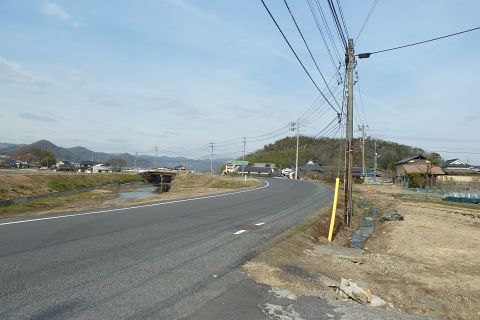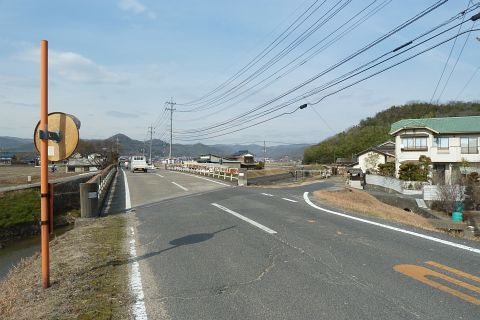 旧県道(現 市道甲弩10号千田楠線)の丁字路を右折して岡田橋へ向かう