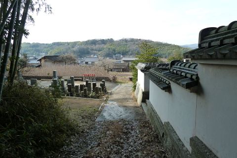左折して墓地の上にある道を南西へ30m程進む