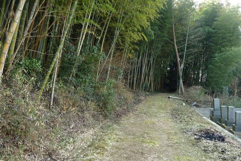 墓地の参道に戻り、左折して北西へ150m下る