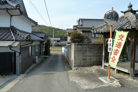 48番札所前で右折して西へ61m下り、十字路を左折して車道を南西へ310m進む