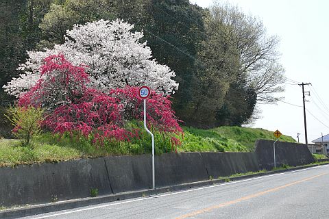 県道48号線を渡った所(向かって左のカーブミラーの後ろ)
