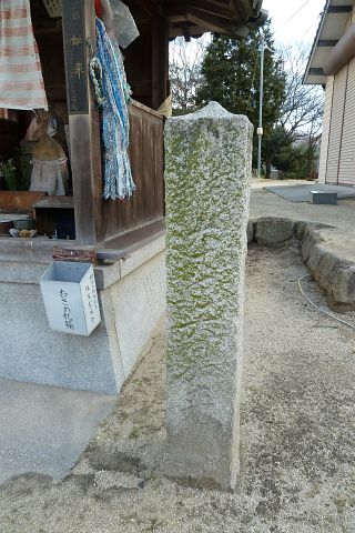 道しるべ「笠岡州崎町 施主 大津屋 万三良」