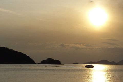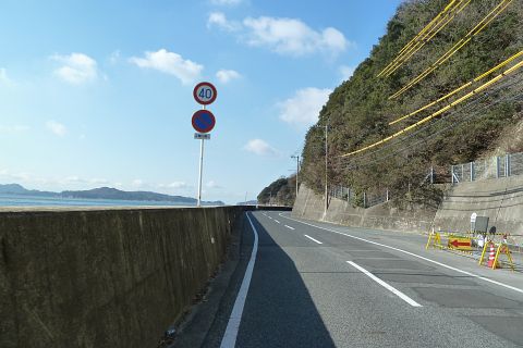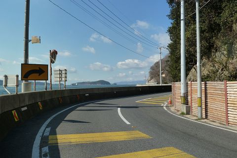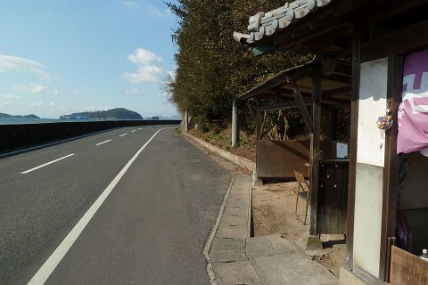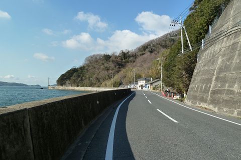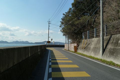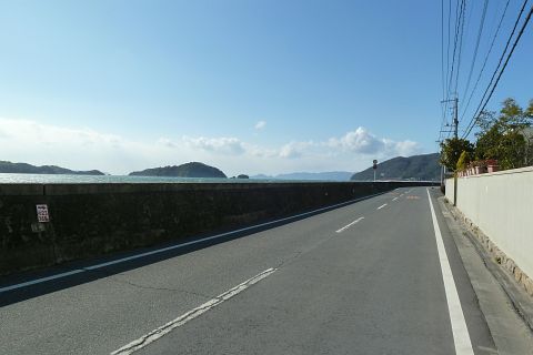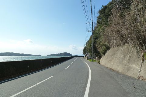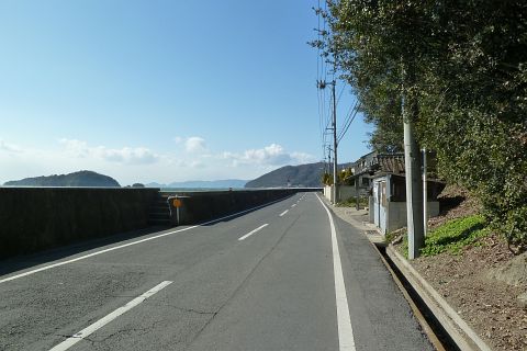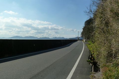神島神社前から王泊の高島神社を遙拝(約2km)