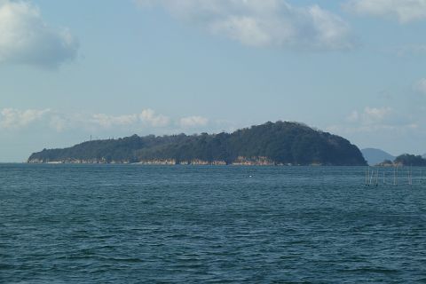 亀島は今治市上島町にある亀島(神島神社の南西36.336km)、蒲團島は播磨灘の