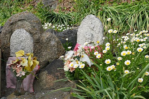 石燈籠と自然石地神