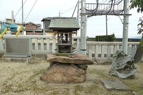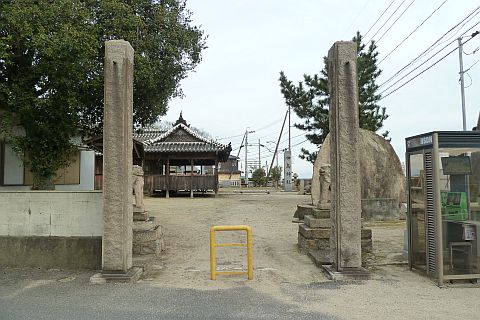 向かって左端に石鳥居、右端に高島神社