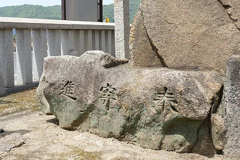 「石材 白石島 保住萬吉 石工 入江新田 原田伊三郎 發起者 支部員一同」