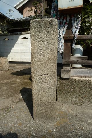 寺標「土州 廿六番 西寺 施主 笠岡 嶌屋礼○○ 鍋屋藤 従是六丁十六間(683.63m)」