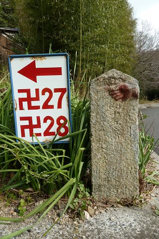 寺標「土州 廿七番 神峯寺 是より四十六間(約83.6m)胡屋 四良三郎」