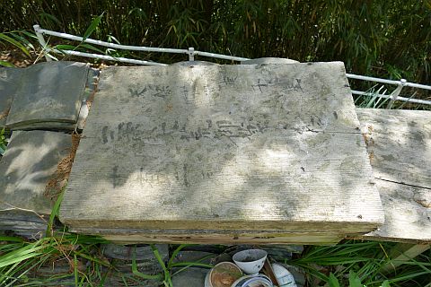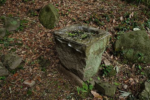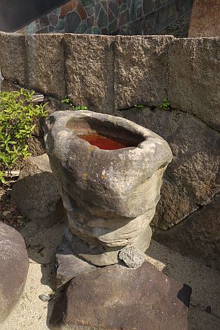 手前にある水鉢に「丸に梅鉢」らしき紋が刻まれている