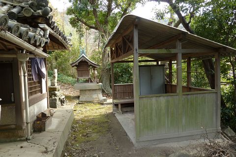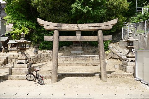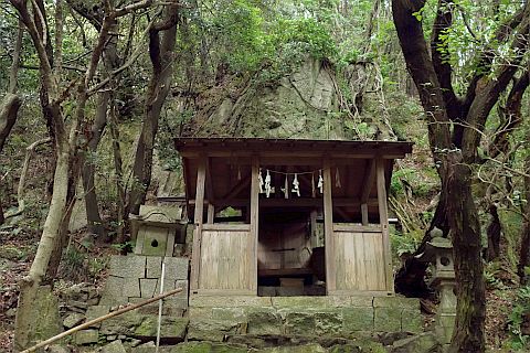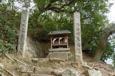 高島の王泊にある。昭和7年頃に榊は枯死。今は玉垣のみが残っている。