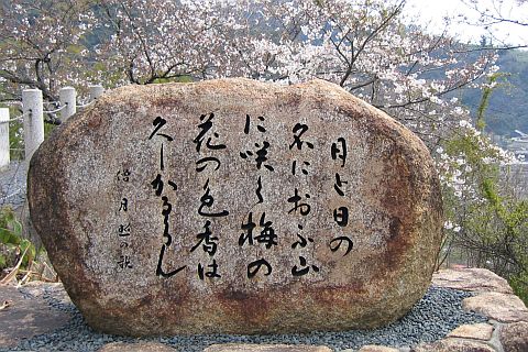 「月と日の 名におふ山に 咲く梅の 花の色香は 久しかるらん 僧 月照の歌」
