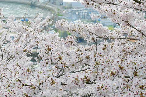 中央に古城山(吸江山 68.3m)、向かって左に住吉港、右に伏越港、その横に応神山(笠目山 218.9m)