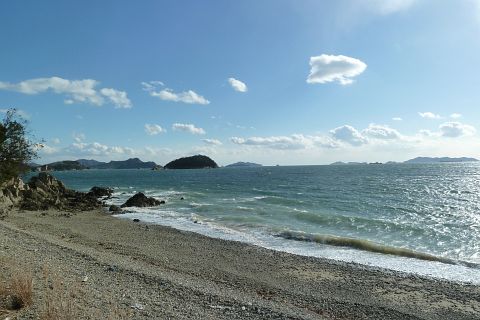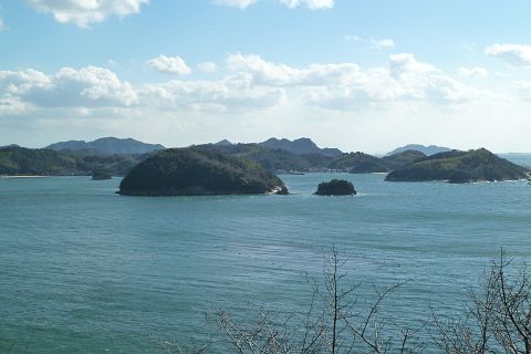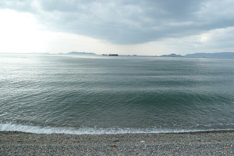 静かに凪いで、島と島との間に見える水平線は、ぐっと弓形にひんまがって、