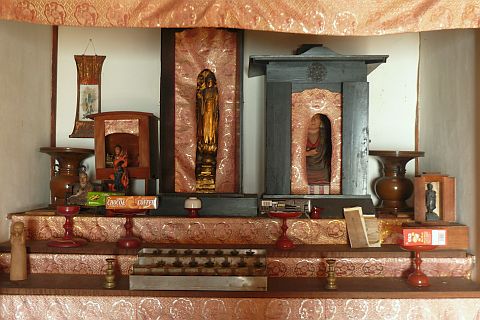 堂内にある阿弥陀如来坐像と弘法大師坐像の台座
