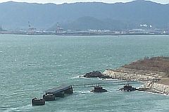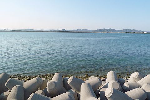 かつては海水浴場だったというが、今は海砂採取により砂がほとんどない浜となっている