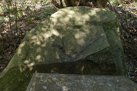 蟠れる老松の下に巨巌屹立せり。傳へ云う。神武天皇御散策の時