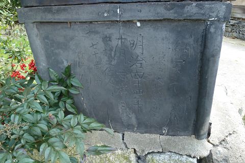 石殿の向かって左の壁の内側と外側にも銘文あり。