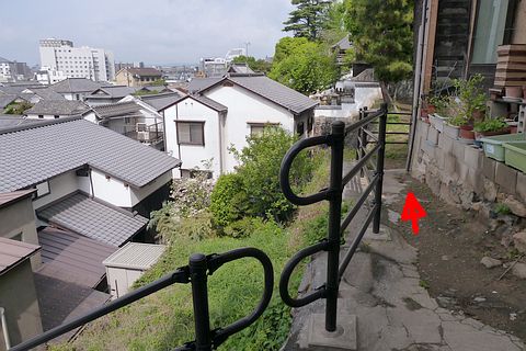 観龍寺の石段の途中に出たら、左折して一旦南へ下る
