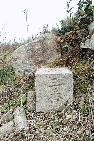 三本松の裏をめぐり鳥打乢を越えて愛宕山の表に出る。三本松の名は義經松、