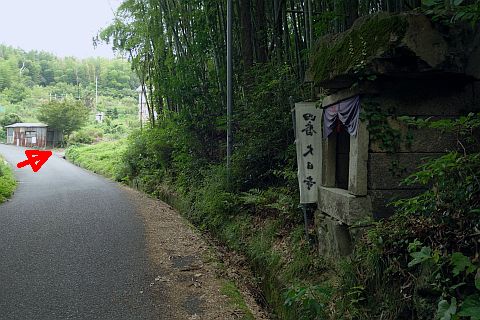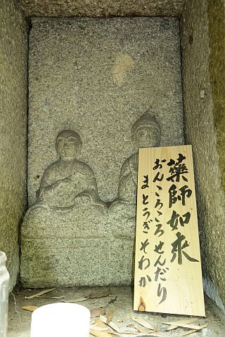 南へ90m、東北東へ240m下ると法輪寺(日間薬師)