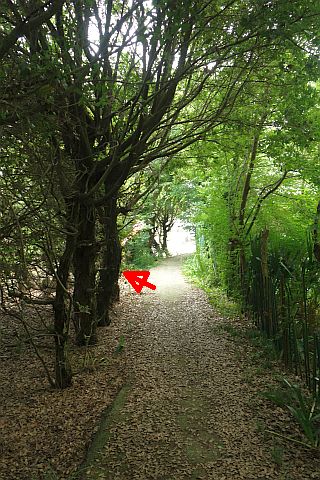 十字路に戻り、東へ260m、南へ75m下る(徒歩・自転車限定)