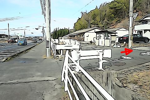 丁字路を右折して北東へ20m進む