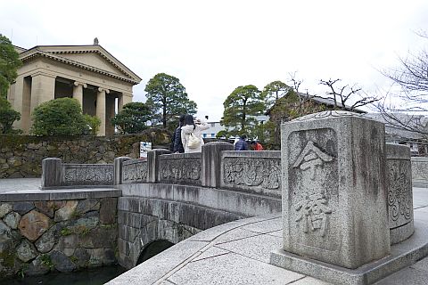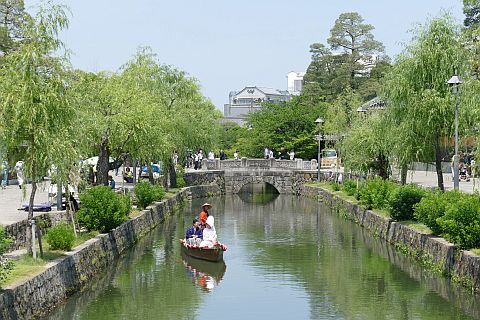 倉敷川と前神町通と倉敷館(旧 倉敷町役場)