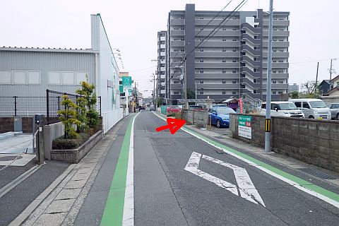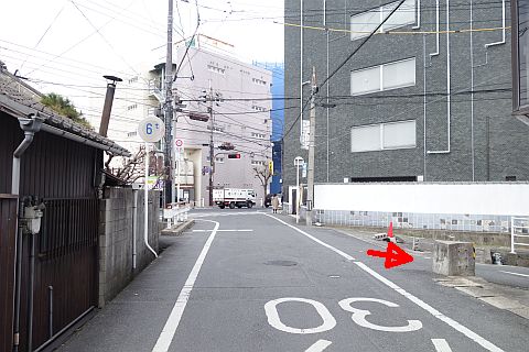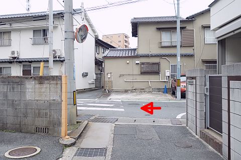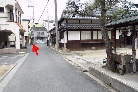 倉敷公民館の西にある十字路から西北西へ50m進む
