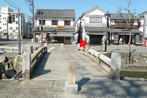 (1)倉敷十二橋のひとつ。向かって左下(南)に親柱が残されている