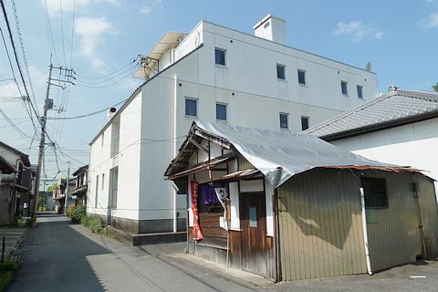 向かって右は倉敷劇場(大正8年に建立。観客1500人以上を収容。)跡