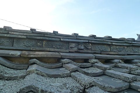 大師堂の棟込(むなごみ)飾り瓦には牡丹の花(幸福・富貴の象徴)が、