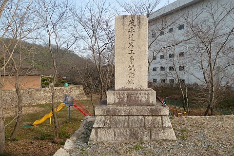 この記念碑が完成した昭和28年に城見村は笠岡市に合併