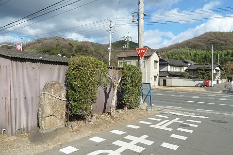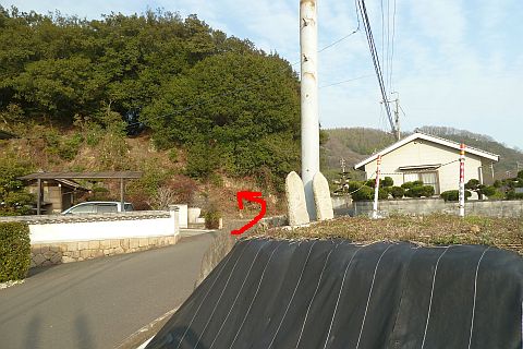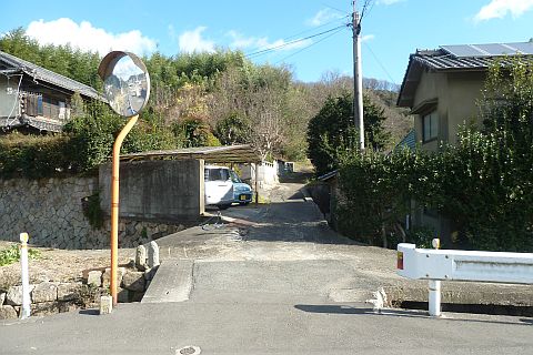 観音堂前から車道を西へ37m進み、丁字路からさらに西へ南西へ50m進む