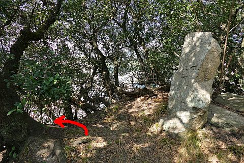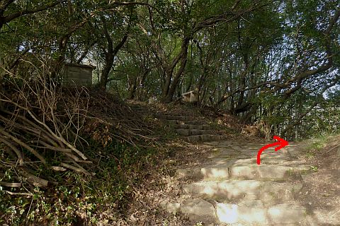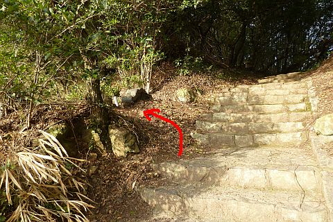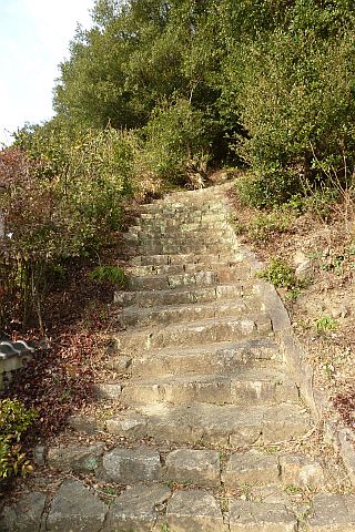 石段の途中にある踊り場の少し下