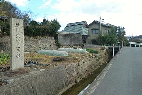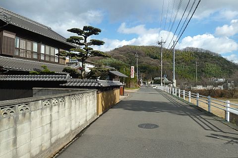 西ノ谷と銅山を結ぶこの道は茂平の第2次干拓の堤防跡(新土手)。