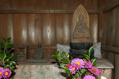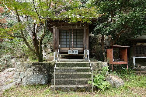 ものと思われる。手前にある観音堂内の如意輪観世音菩薩輪王坐像が本尊で