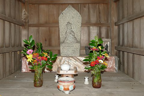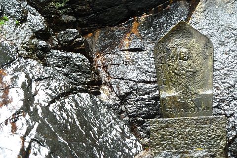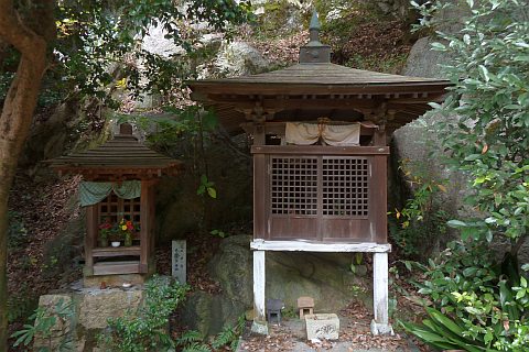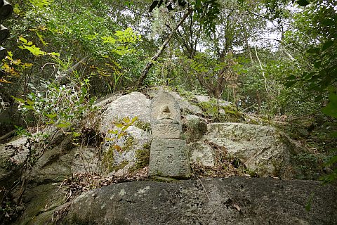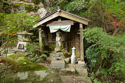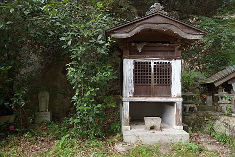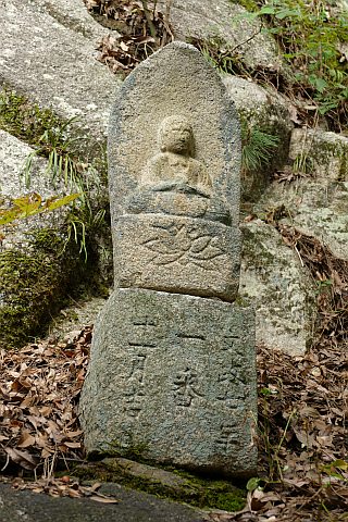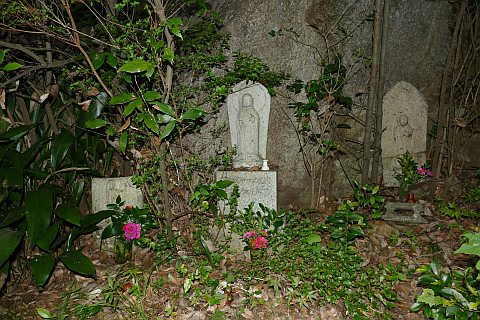 後ろの岩場に石仏がある