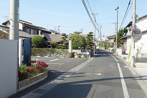 県道277号線の十字路に戻り、右折して東へ25m進み、丁字路を右折して南南東へ35m進む