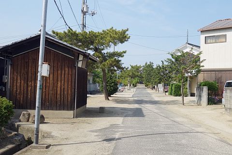 川沿いの道を南へ35m進んで右折し、山陽本線沿いの道を西南西へ40m進む